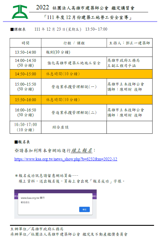 「111年度12月份建築工地勞工安全宣導」講習